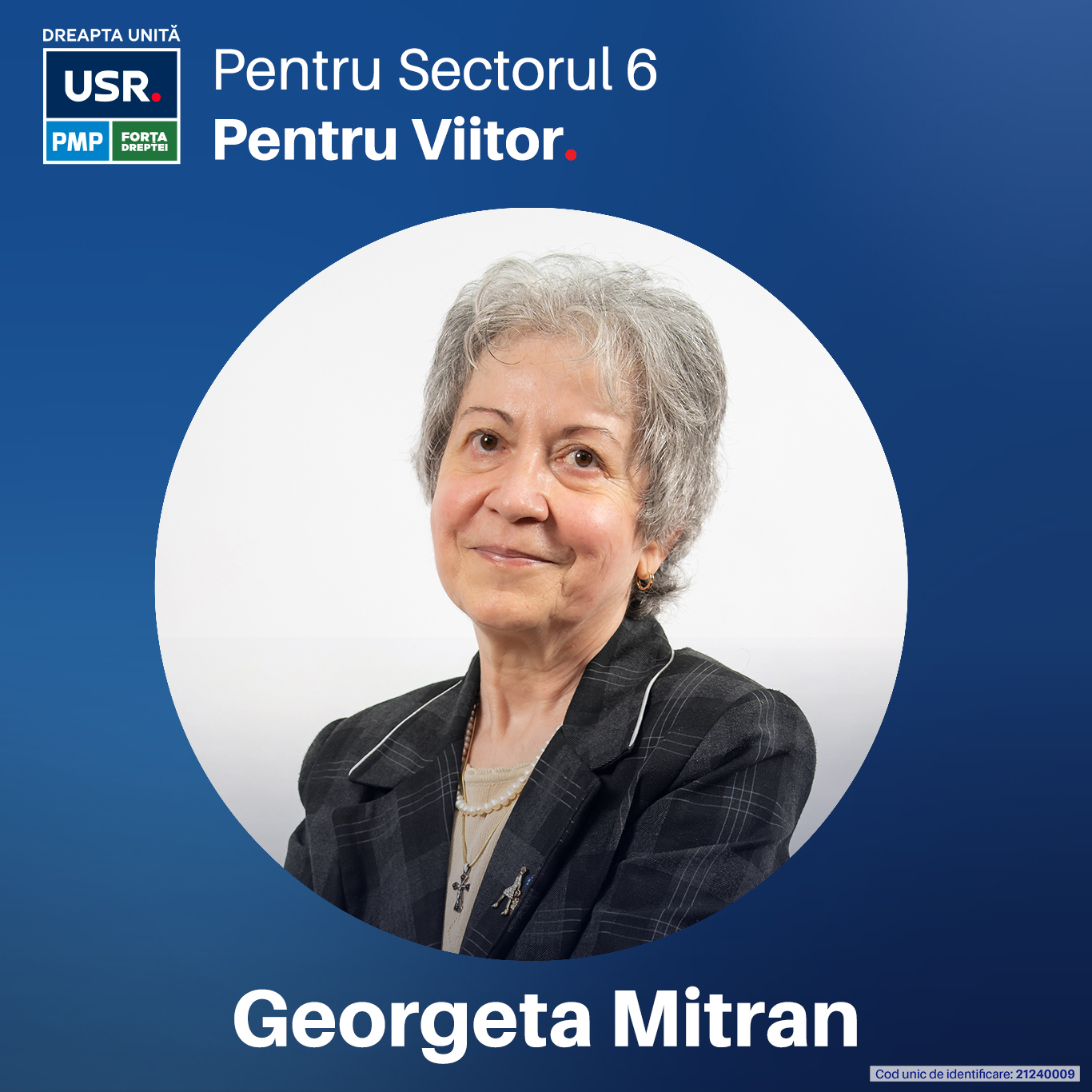 Georgeta Mitran este absolventă a facultății de Agroturism din cadrul USAMV București și este consilier local din partea USR Sector 6. A profesat ca ziarist, după 1989, timp de 25 de ani. Este consilier în funcție din 2016. În mandatul trecut, a depus 22 de proiecte, dintre care 9 au fost adoptate. Face parte din Comisia de educație, sport, sănătate, cultură, culte, tineret şi probleme sociale și Comisia de relații internaționale și cu mediul asociativ.